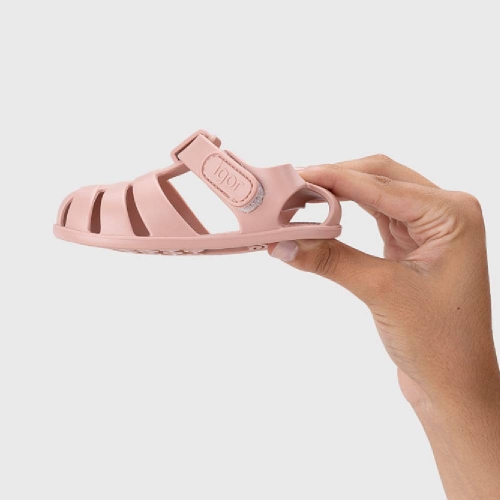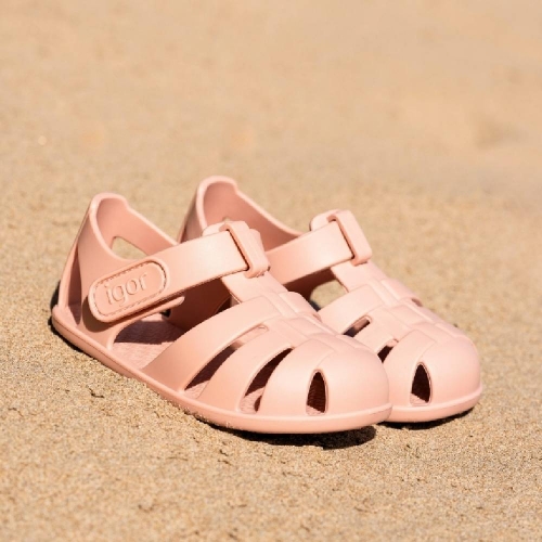 Cangrejera diseñada en concepto barefoot medium, cero drop, flexible y blandita, fabricada con al menos un 50% de pvc reciclado libre de ftalatos y cierre adherente.
