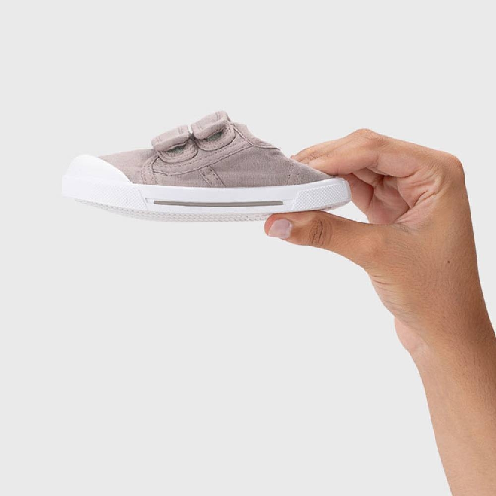 Zapatilla de lona con doble cierre adherente 100% algodón, de concepto barefoot wide, con la puntera mucho más ancha, cero drop, flexible, blandita y plantilla extraíble. El tinte de nuestras lonas es irregular por su efecto lavado.