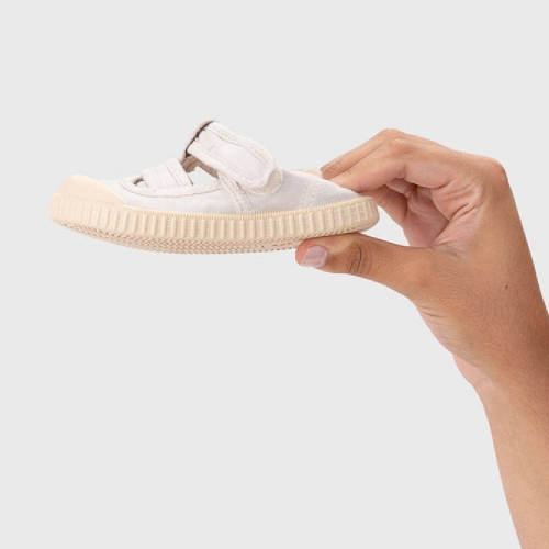 Sandalia cangrejera de lona 100% algodón, de concepto barefoot wide, con la puntera mucho más ancha, cero drop, flexible, blandita y plantilla extraíble. El tinte de nuestras lonas es irregular por su efecto lavado.