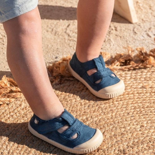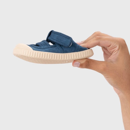 Sandalia cangrejera de lona 100% algodón, de concepto barefoot wide, con la puntera mucho más ancha, cero drop, flexible, blandita y plantilla extraíble. El tinte de nuestras lonas es irregular por su efecto lavado.