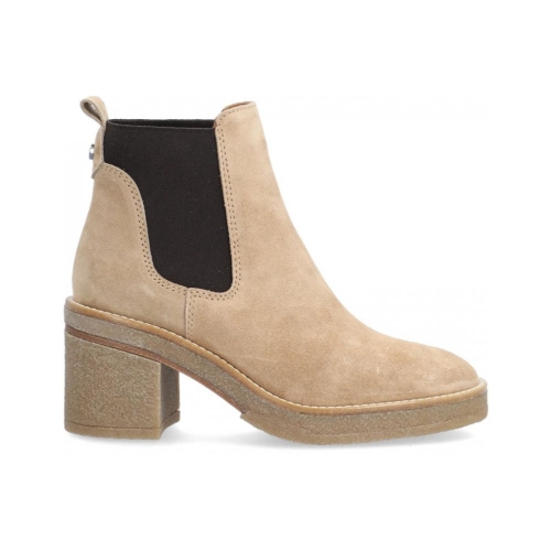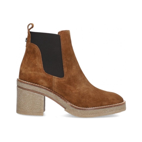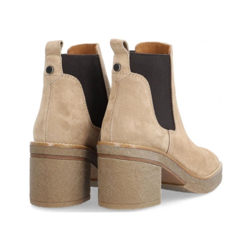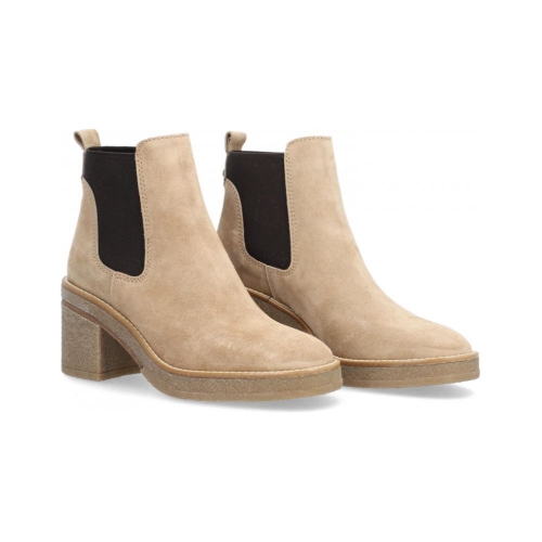 Botín para mujer ALPE JANIS, fabricado en piel (baby silk) de color noisette con tacón de 7,5 cm, suela antideslizante y puntera redonda, sin cierre y caña baja.