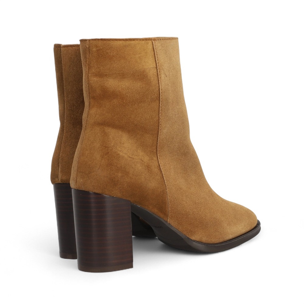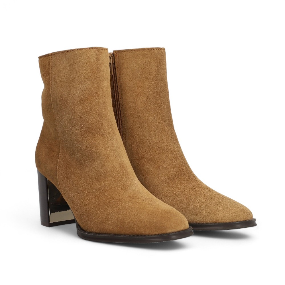 Botín para mujer ALPE ELYSEE, fabricado en piel (baby silk) de color bronce con tacón de 6,5 cm, suela antideslizante y puntera redonda, con cierre mediante cremallera y caña media.