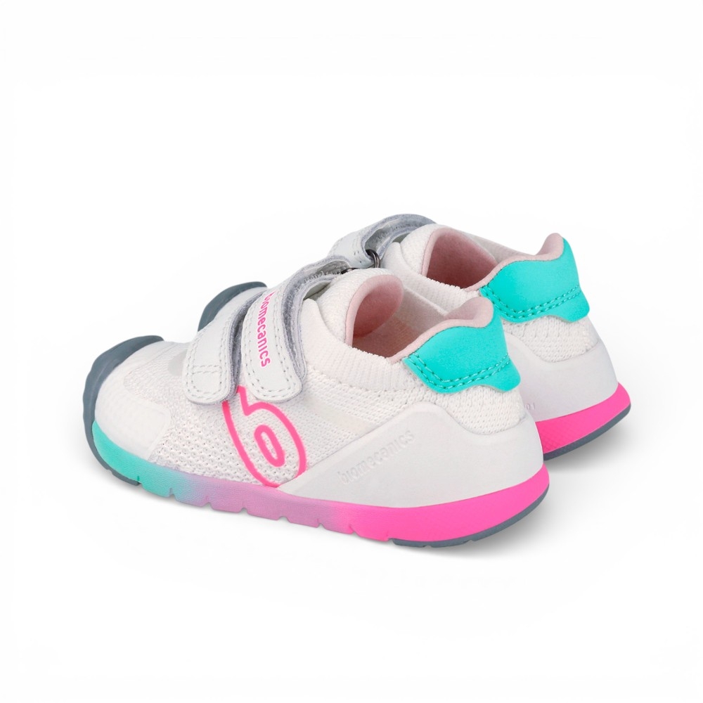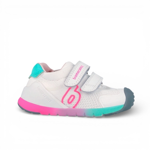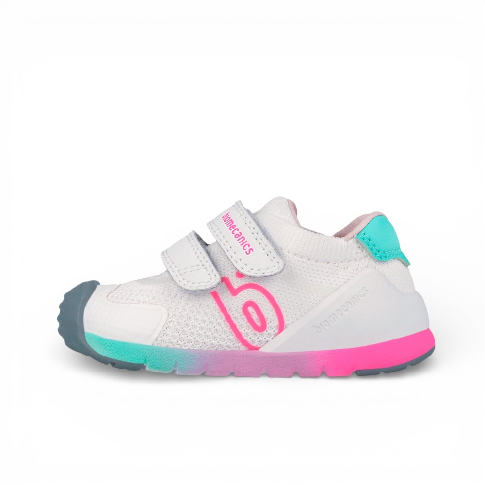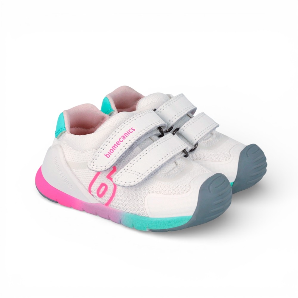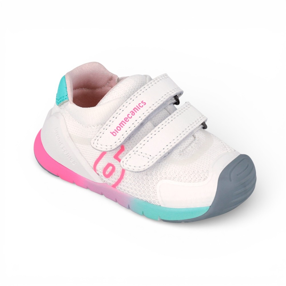 Deportivas Biomecanics para primeros pasos de niña, fabricadas en materiales de primera calidad, diseñadas para que las peques crezcan felices con una pisada saludable mientras corren, juegan y exploran. Cuentan con plantillas extraíbles y transpirables que ayudan a prevenir humedad, hongos y bacterias, y su cierre adaptable garantiza un calce seguro y cómodo. Nuestro hendido en “U” evita presiones en el tobillo, mientras que los estabilizadores laterales externos suaves y ligeros permiten máxima libertad de movimiento. ¡Drop cero! La horma evolutiva se adapta a cada talla y la suela flexible y ligera protege y amortigua, favoreciendo un paso cómodo y seguro. Trabajamos con forros microperforados con efecto termorregulador que mantienen el pie seco y confortable durante todo el día.
