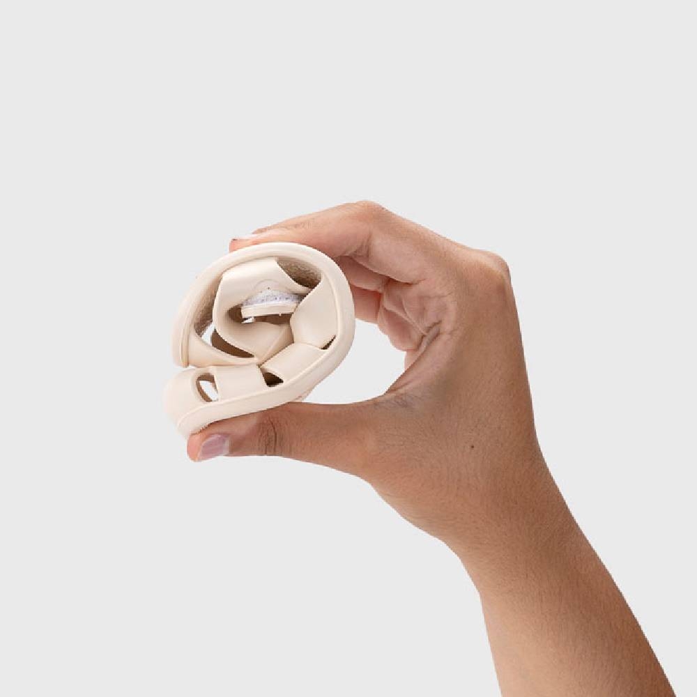 Cangrejera diseñada en concepto barefoot medium, cero drop, flexible y blandita, fabricada con al menos un 50% de pvc reciclado libre de ftalatos y cierre adherente.