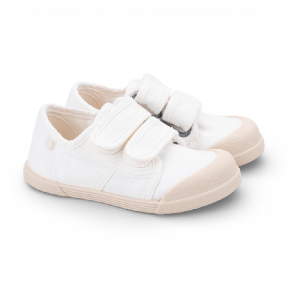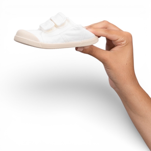 Zapatilla de lona con doble cierre adherente 100% algodón, de concepto barefoot medium, cero drop, flexible, blandita y con plantilla extraíble. El tinte de nuestras lonas es irregular por su efecto lavado.