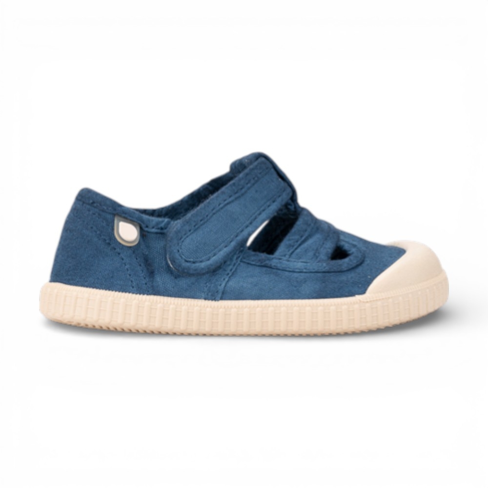 Sandalia cangrejera de lona 100% algodón, de concepto barefoot wide, con la puntera mucho más ancha, cero drop, flexible, blandita y plantilla extraíble. El tinte de nuestras lonas es irregular por su efecto lavado.