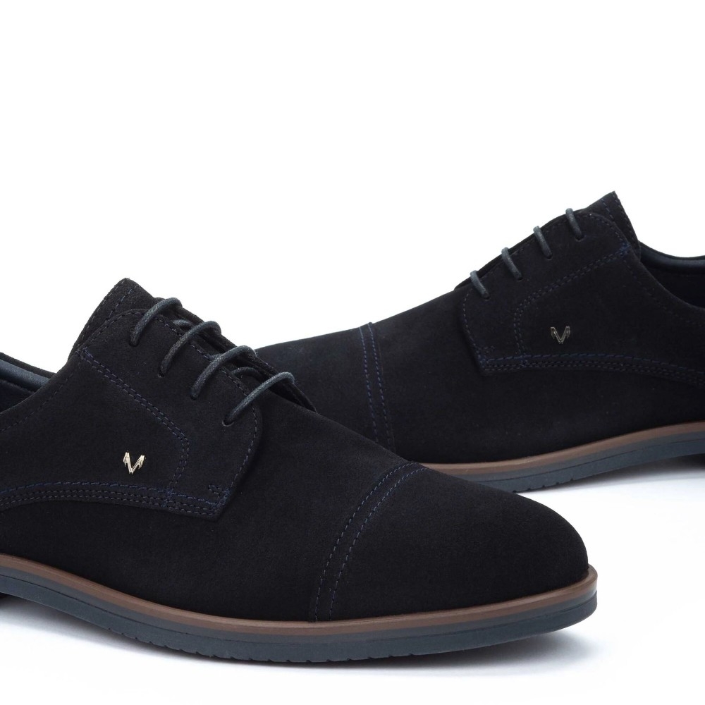 Zapato de piel para hombre en serraje con estilo blucher, punta almendrada y suela de 3,3 cm. Comodidad para el día a día, New Elegance. La elegancia actualizada.