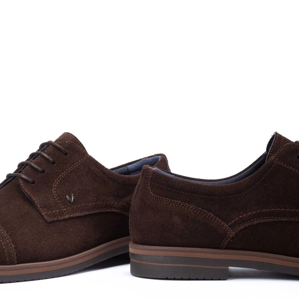 Zapato de piel para hombre en serraje con estilo blucher, punta almendrada y suela de 3,3 cm. Comodidad para el día a día, New Elegance. La elegancia actualizada.