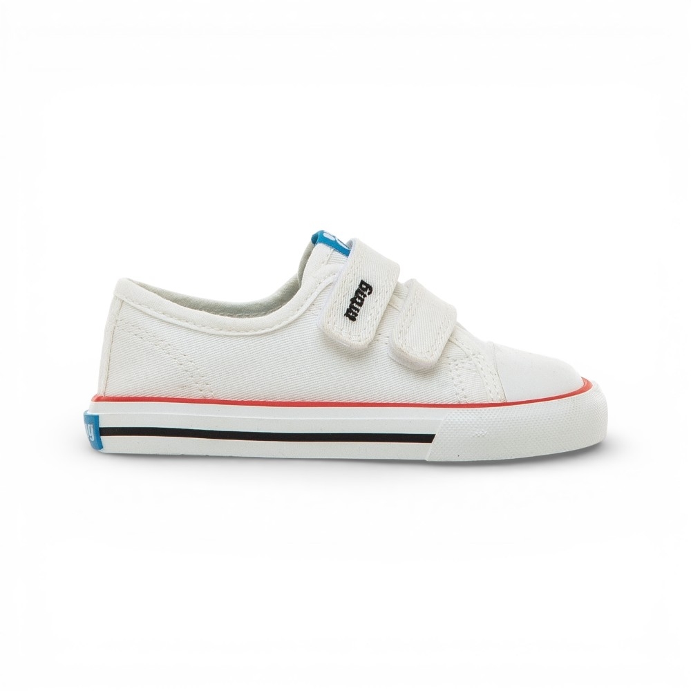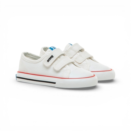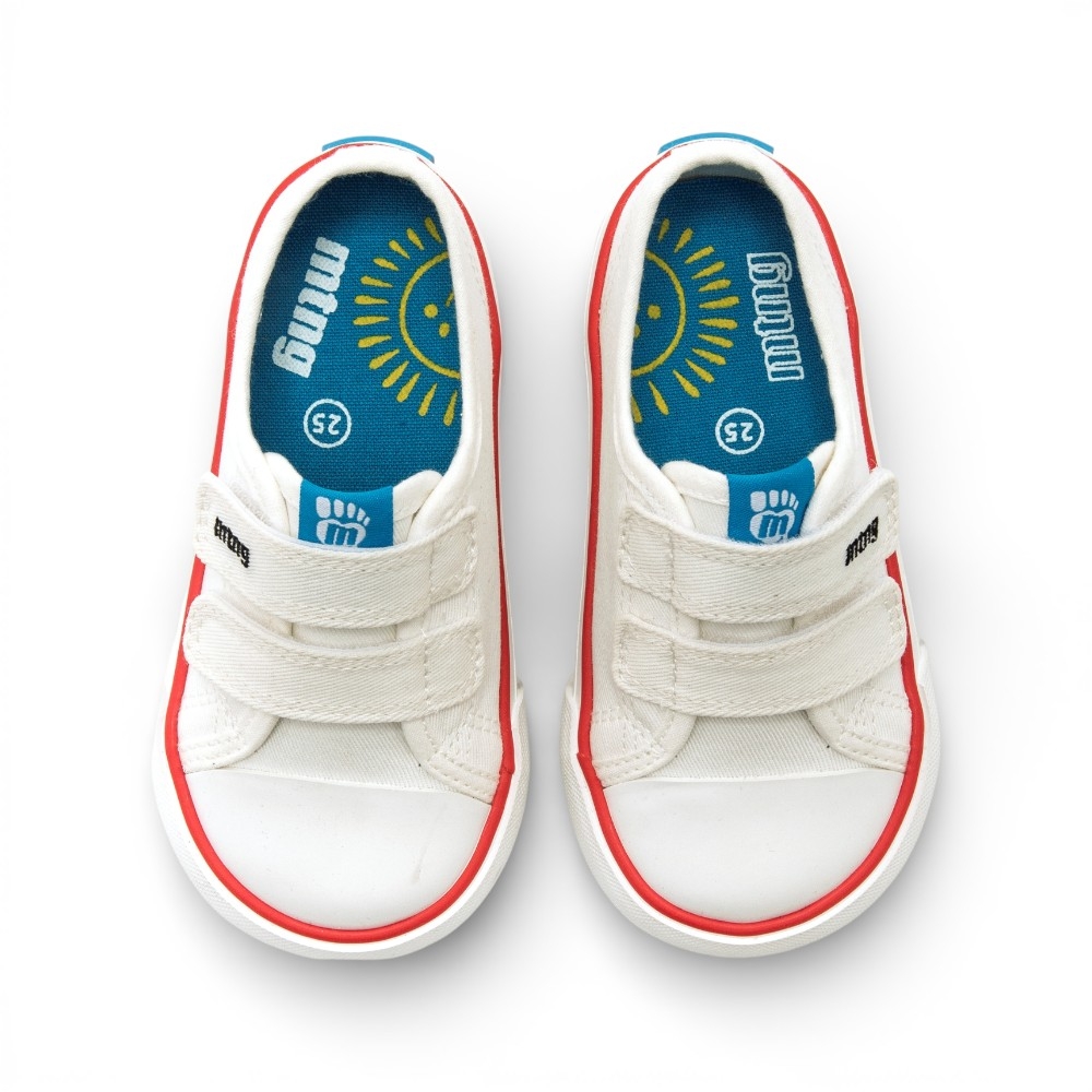 Zapatillas barefoot de color blanco para niños, modelo Free de la marca Mustang, estilo casual. Su diseño sencillo con cierre doble adhesivo aporta comodidad. Los detalles en azul, rojo y negro le dan un toque deportivo y divertido. Diseñadas y desarrolladas especialmente en colaboración con el Dr. Juanjo López, traumatólogo deportivo e infantil, para respetar el desarrollo natural del pie del niño y la niña. Gracias a su puntera ancha permite el libre movimiento de los dedos dentro del zapato. Las plantillas extraíbles facilitan comprobar si la talla del calzado es la correcta para tu hijo. Además, su fácil apertura facilita que el niño pueda descalzarse y calzarse de forma autónoma. Fabricado con un 60% de algodón reciclado post consumo y un 40% de algodón convencional. Con certificado VEGANO sellado por INESCOP, el cual garantiza que la naturaleza química principal del material no se corresponde con fibras de origen animal.
